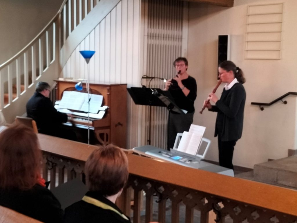 Spaß hat es gemacht, dem Vorbereitungsteam, den Musizierenden und offensichtlich auch den Zuhörern. Die von Mitgliedern des Philharmonischen Chores vorgetragenen Liedsätze waren kurz, aber prägend für die Epoche der Romantik und gut vorgetragen, das Saxophonensemble unter der Leitung von Daniela Schiebler spielte sehr professionell Stücke von Interpreten wie Queens, Louis Amstrong und Terry Gilkinson und wurde mit großem Applaus belohnt. Von besonderer Qualität zeigte sich auch das Flötenensemble Ines Amrhein im Zusammenklang mit Orgel und Klavier, wobei vor allem das Hoe-down von Brian Bonsor mit großer Begeisterung aufgenommen wurde.